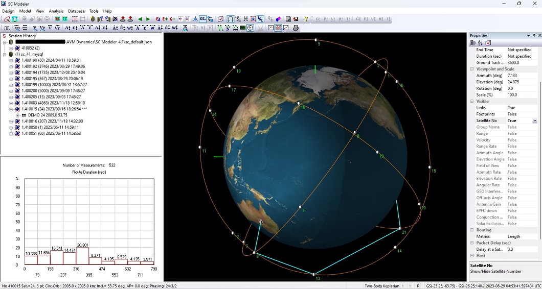 SC Modeler 4.1 is a comprehensive tool for the conceptual design, visualization, and analysis of satellite networks, from small-scale to multi-layered mega-constellations. Its integrated modeling environment enables rapid development and performance comparison of design alternatives.